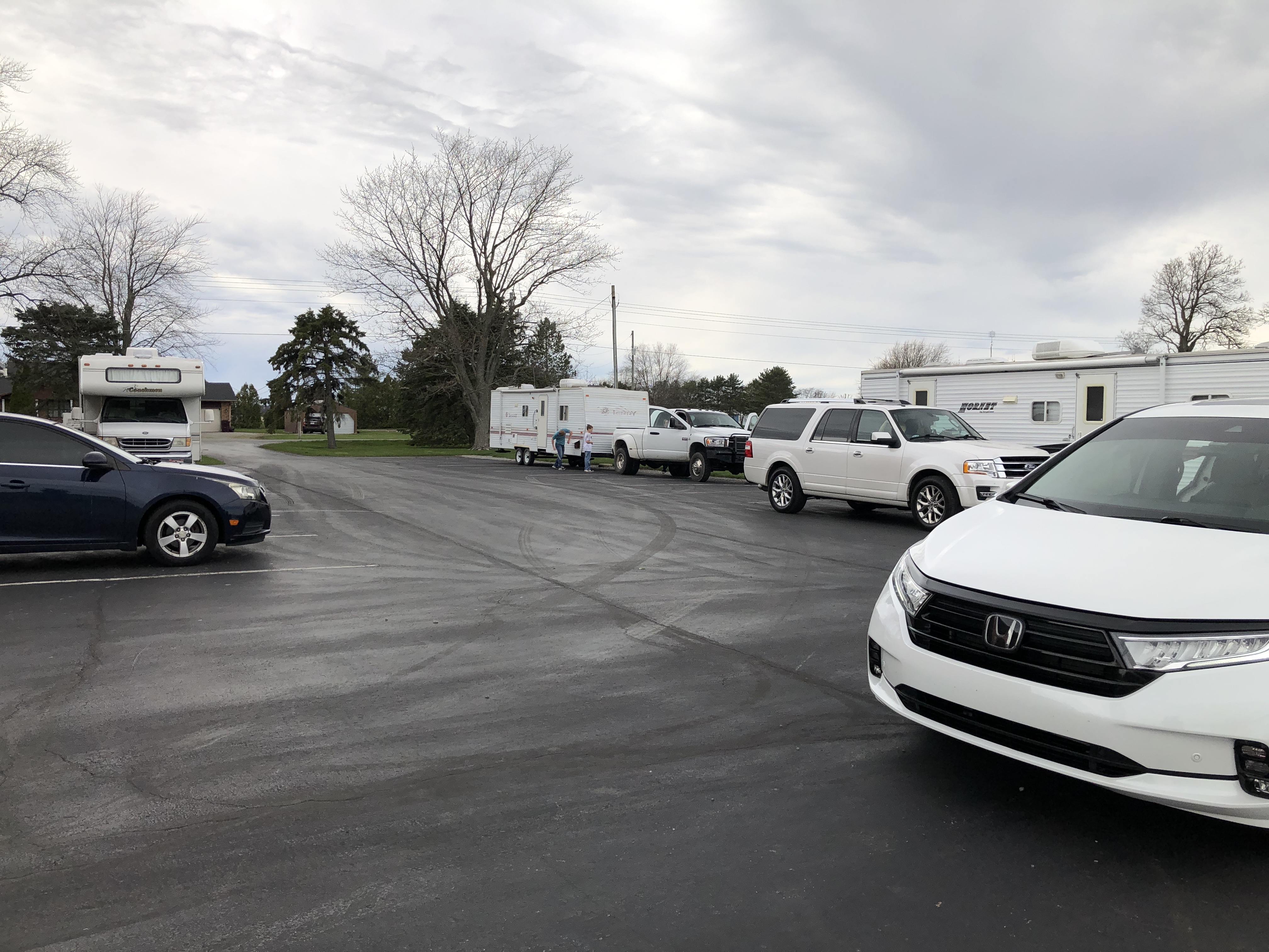 It was an 8 hour drive to get here. We are staying at a school. The church people brought some campers for couples and families to stay in. After we got here around 1, we ate lunch then played games till supper.