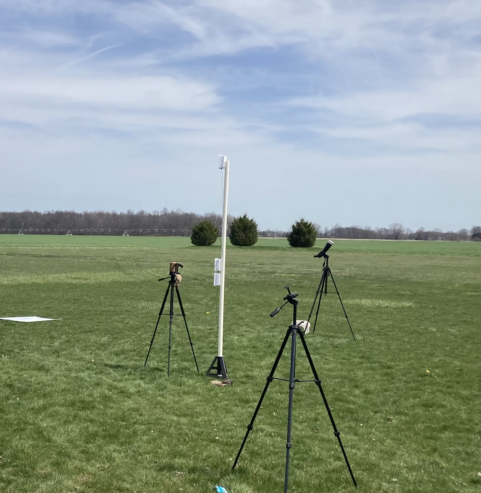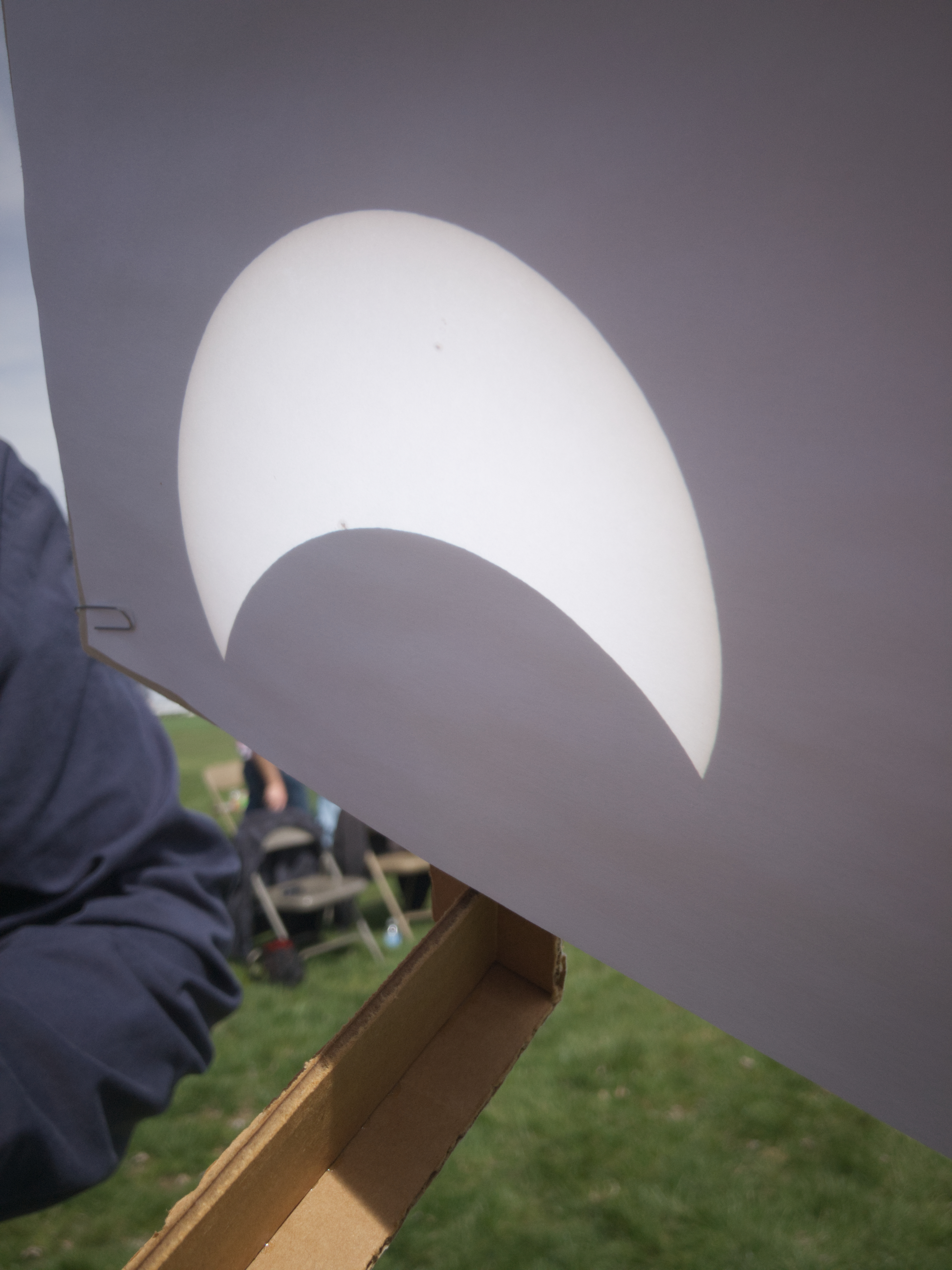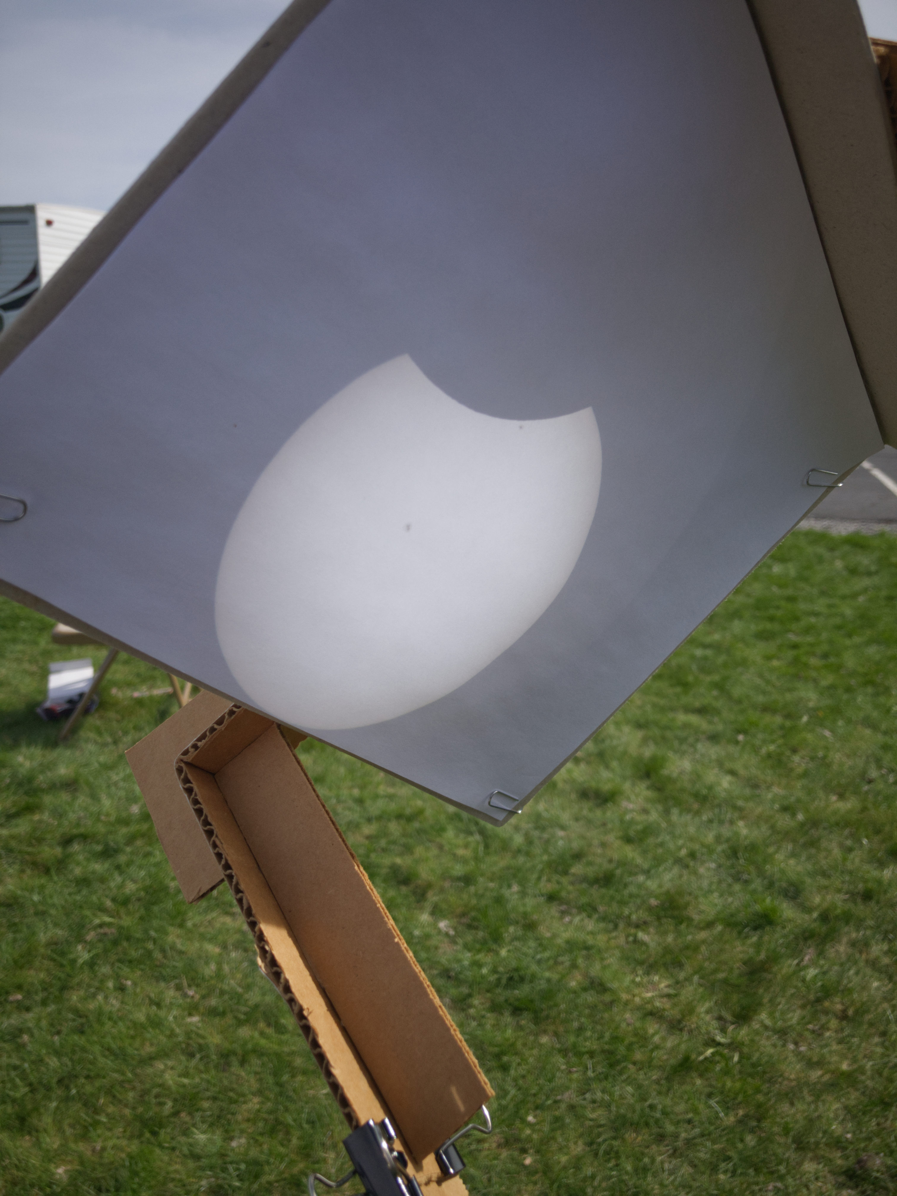 We set up some of the eclipse equipment early. The trip organizer has brought things like a spotting scope, a temperature tower, and pieces of whiteboard to see things. The temperature tower was to see how the ground temperature changed when the sun was in totality.