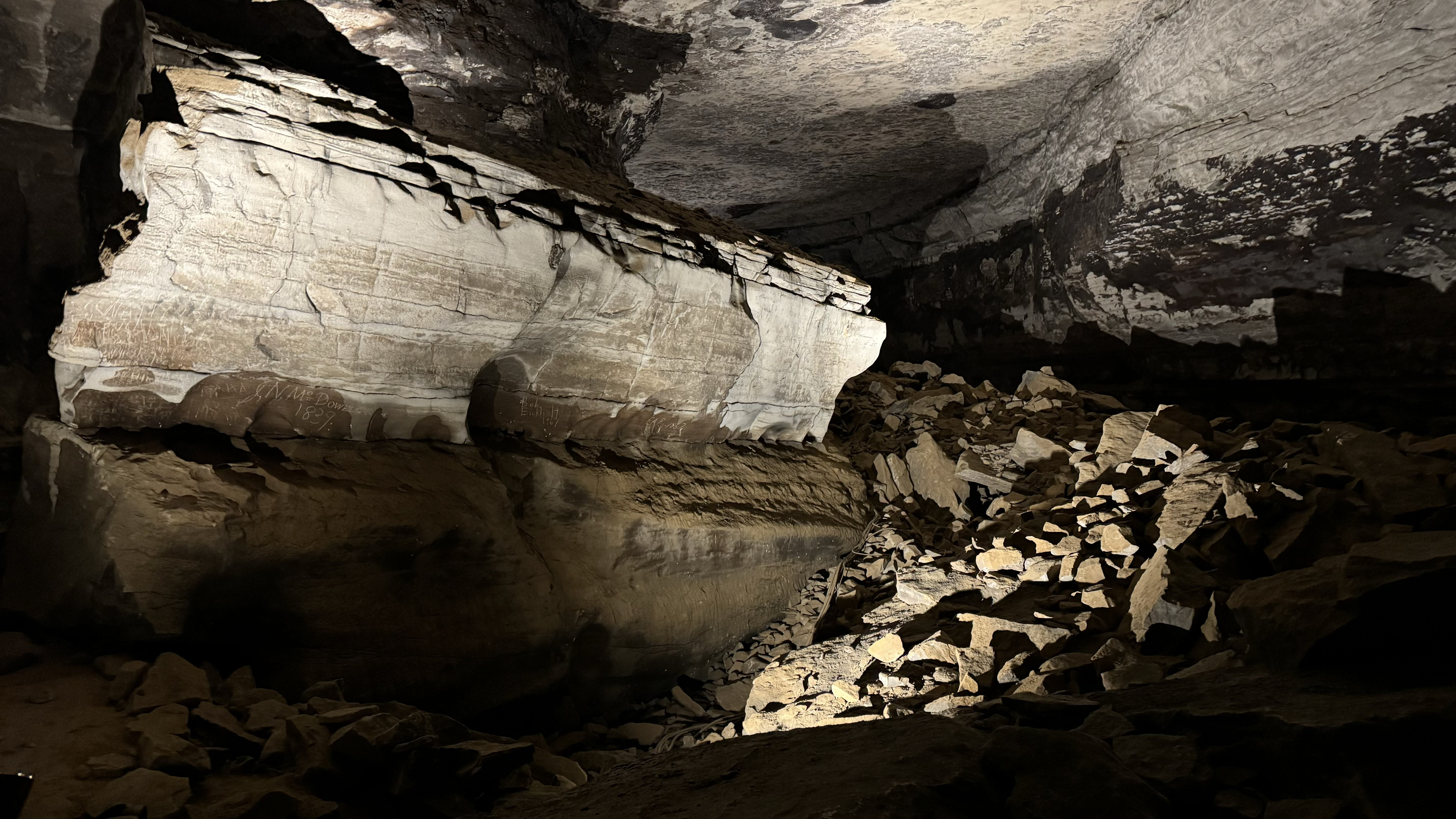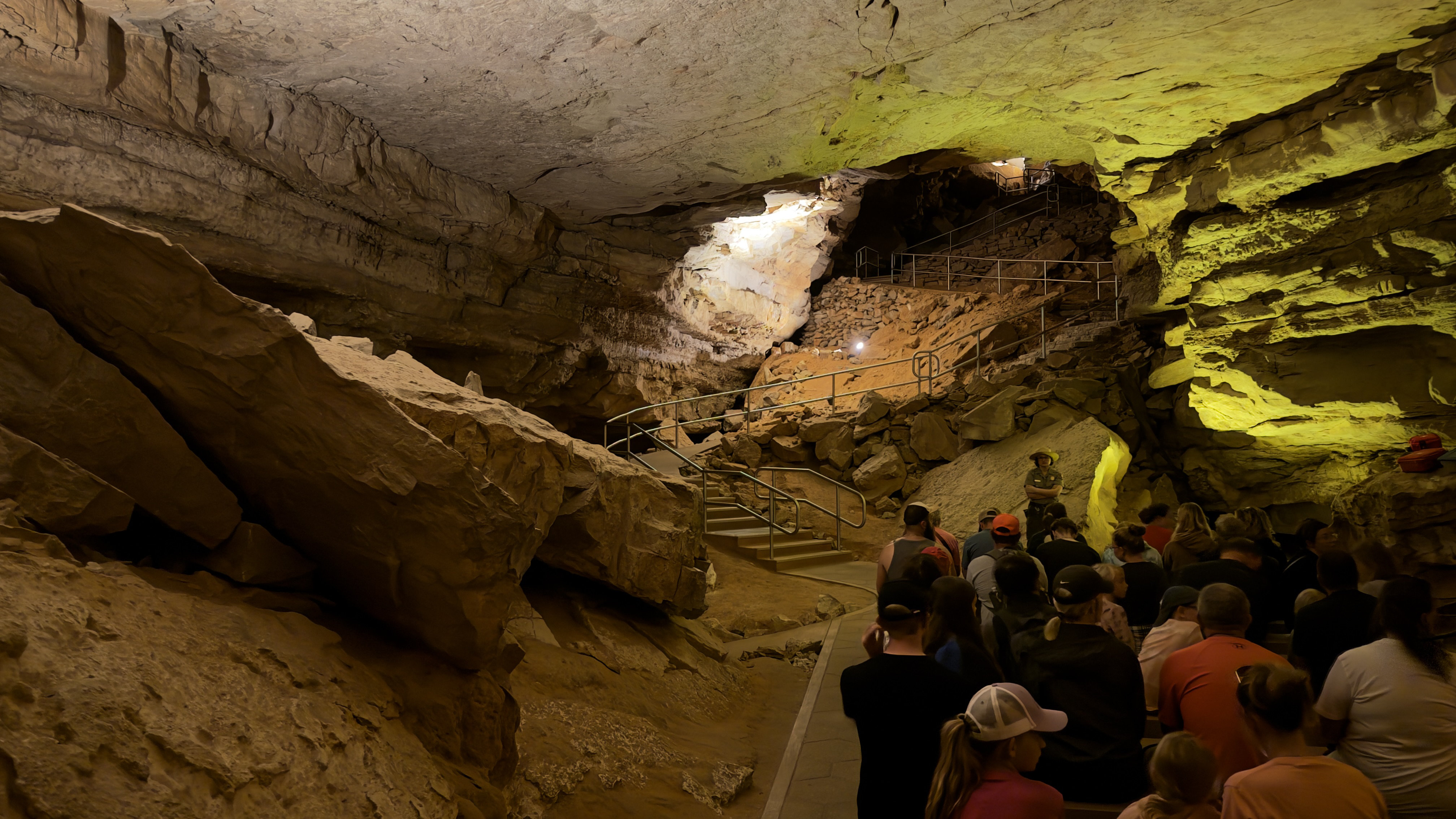 The second day was Mammoth Cave day. We got there at 8:30 because our tickets were for the extended historic tour at 9. We did the usual tourist things like go to the gift shop to kill some time. At 9 our whole tour group gathered in a shelter and the ranger giving the tour went over the rules and did the standard tour things. Then we descended into the cave.