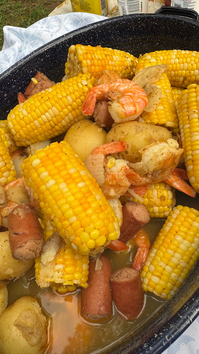 We went camping the beginning of August with some friends which was fun. We even had Low Country Boil which was delicious! When we camp we camp right! 🤣