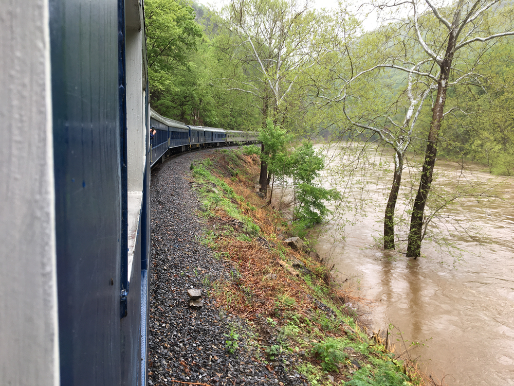 When we got there we got tickets and boarded the train. I didn’t get any pictures of the cars, but one of them was open with a roof over it. We saw 3 or 4 bald eagles and a couple of turkeys. We also saw bald eagle nests. The water in the river was very high. They said it rose 9 feet overnight. It took about 3 hours for the whole ride. At one point they stopped the train because of debris.